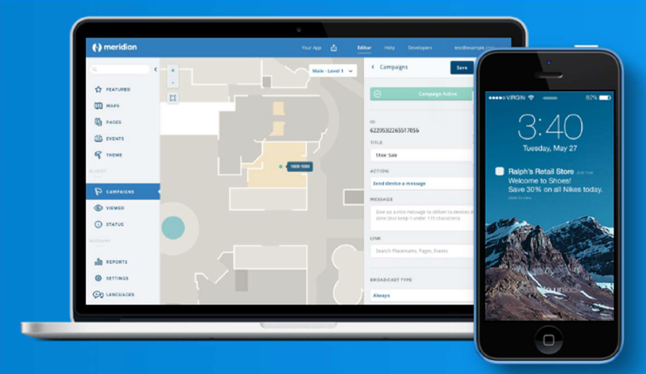 Ovi prostori mogu iskoristiti Meridian na način da isporučuju lokacijski relevantne informacije kao što su mapiranje, turn-by-turn navigaciju, informacije o održavanja specifičnih događanja i obavijesti korisnicima mobilnih aplikacija za vrijeme njihovih posjeta.