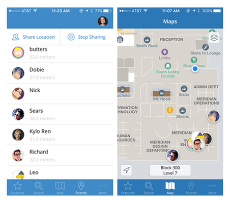 Našu tehnologiju lokacije pokreću beaconi. Oni mogu biti konfigurirani za blizinu u proximity modu (na primjer, da se aktiviraju push poruke) ili na mjesto (kako bi omogućili da mobilna aplikacija može izračunati poziciju u zatvorenom prostoru). Koristeći vlastiti Aruba Beacon mrežni hardver, Meridian inženjerski tim je u Portland napravio novi lokacijski API koji omogućava zajedničko ažuriranje podataka o položaju kako u frontednu, pa tako i u backendu, omogućavajući korisnicima da dijele svoju trenutačnu lokaciju s drugima, dok su na određenom mjestu. Ovaj API je sada dostupan u Meridian SDK za iOS i Android. Meridian AppMaker platforma koristi navedeni API za “Pronađi svoje prijatelje” značajku.